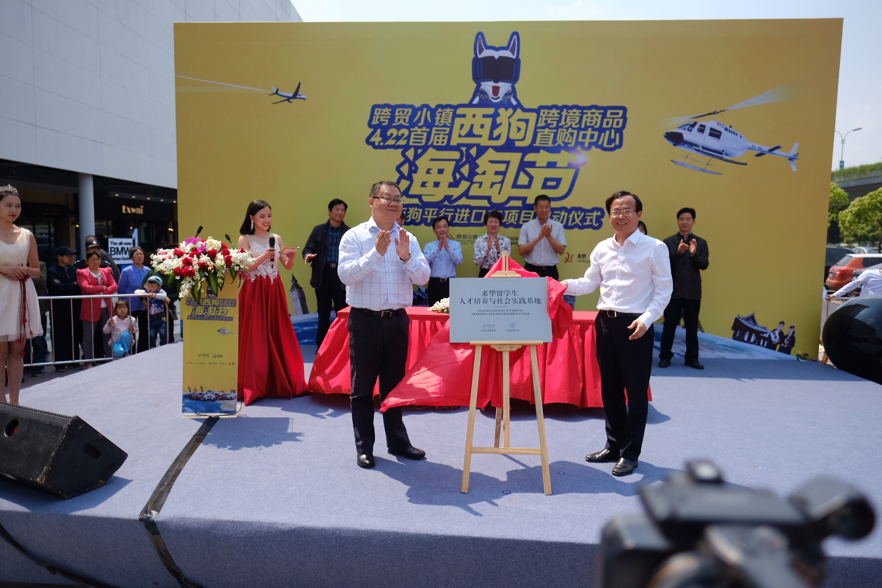 副校长黄建新与下城区委常委、跨贸小镇管委会党委书记沈凯波共同进行了“来华留学生人才培养与社会实践基地”揭牌仪式。小欧视频
