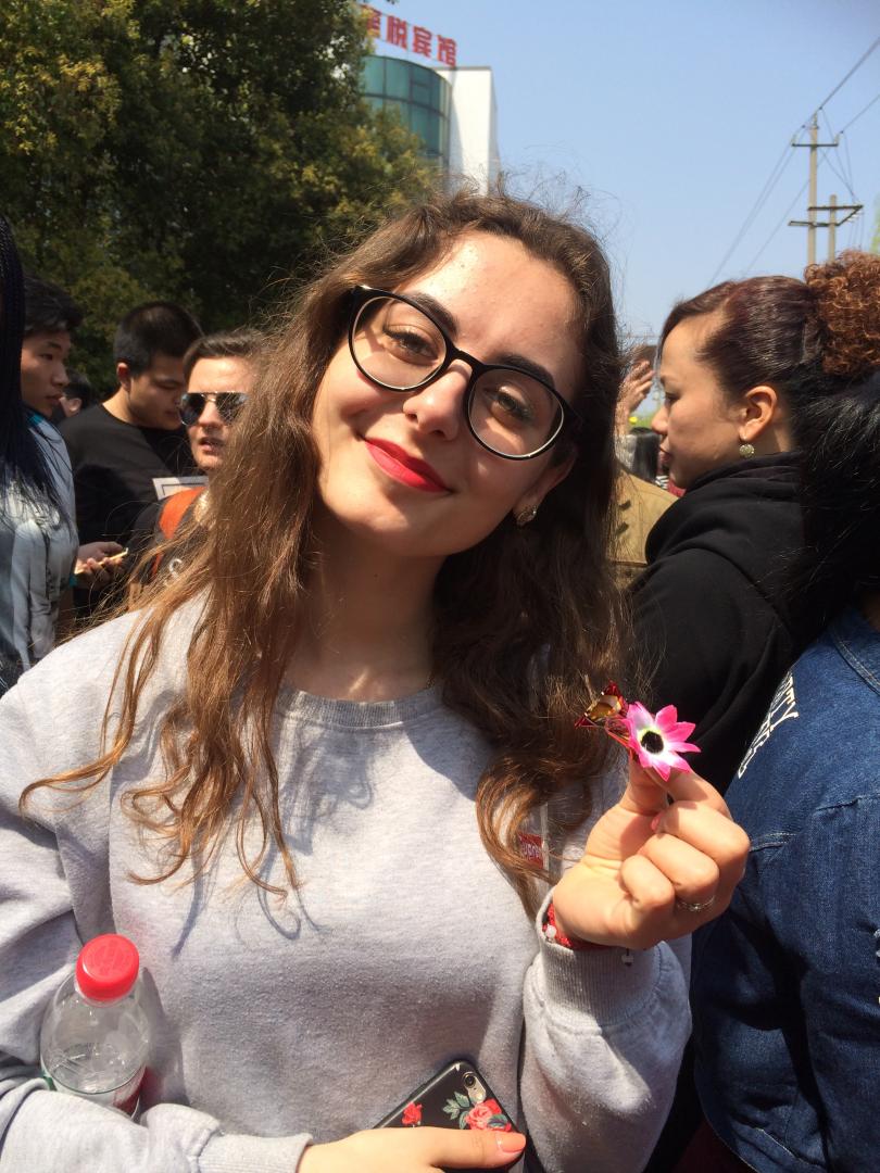 花轿巡游的现场人山人海,观众们摩肩接踵。巡游队伍展示了江南民族舞方队、非遗桑叶龙、秧歌队、喜迎丰收队、腰鼓队、上柏马灯队、木兰扇队、中国传统武术方队、金鹅老龙和骑游队等,让留学生们感受到了浓浓的传统文化节日气氛。蚕花姑娘沿途抛洒蚕花,寓意蚕农期待蚕桑生产丰收的心愿。围观的村民和游客们为了讨个好彩头争相接住蚕花,哈萨克斯坦的留学生KRAVETS ADELINA也开心地接住了一朵蚕花!