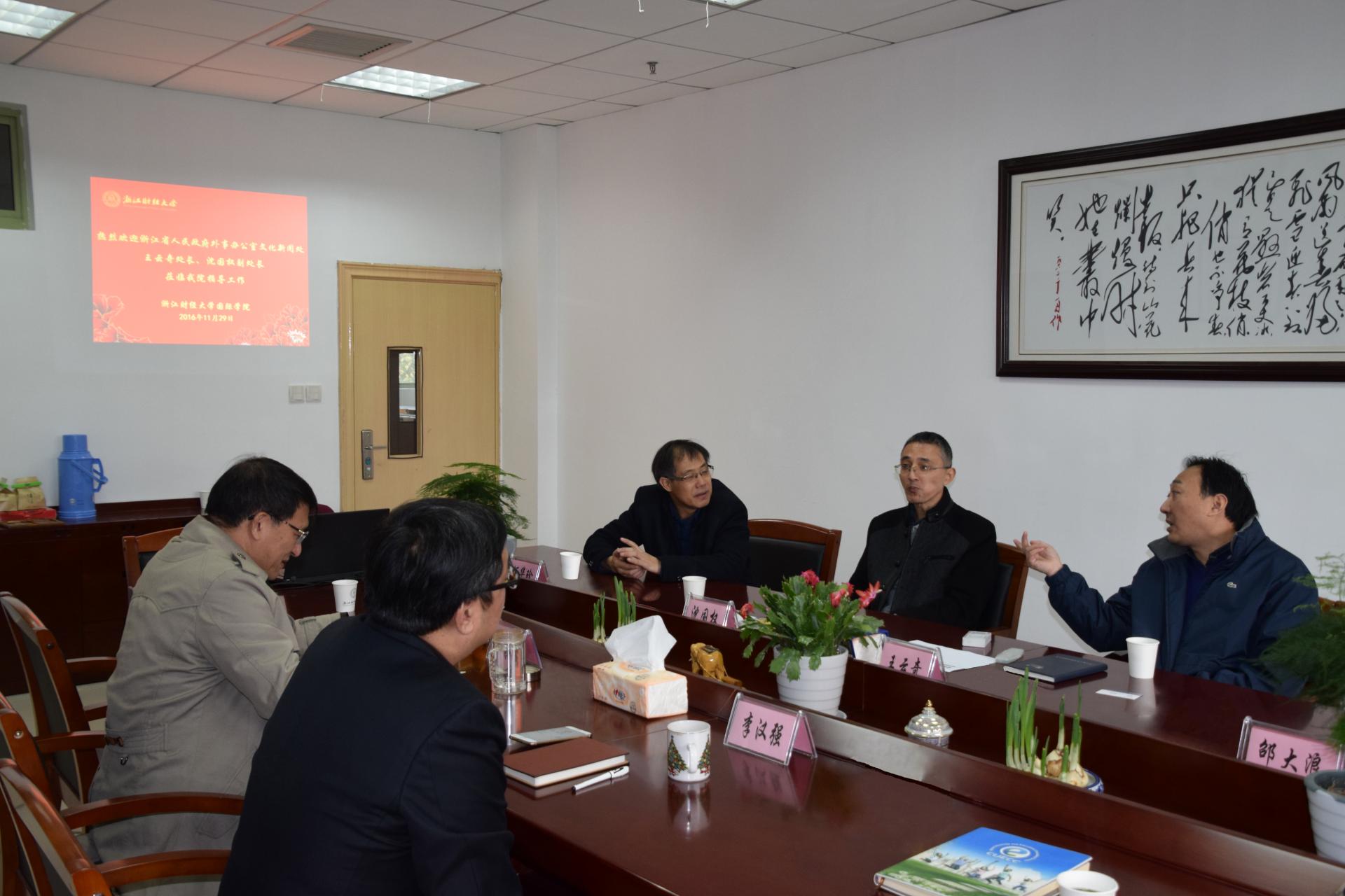 讲座开始前,黄建新副校长会见了王云奇处长、沈国权副处长,向他们介绍了学校的相关情况,并希望得到省政府外事办公室对学校工作一如既往的支持和指导。