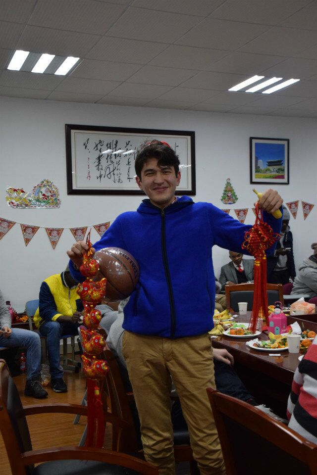 学院为留学生准备了小吃,水果和咖啡,大家围坐在一起,相互交流,相互问候,相互祝福。伴随着温馨的气氛,来自世界各地的学生上台表演了有各自民族特色的小节目,中间还穿插着一些趣味小游戏和抽奖活动,将现场气氛一次又一次推向高潮。同学们载歌载舞,现场气氛一片融洽。