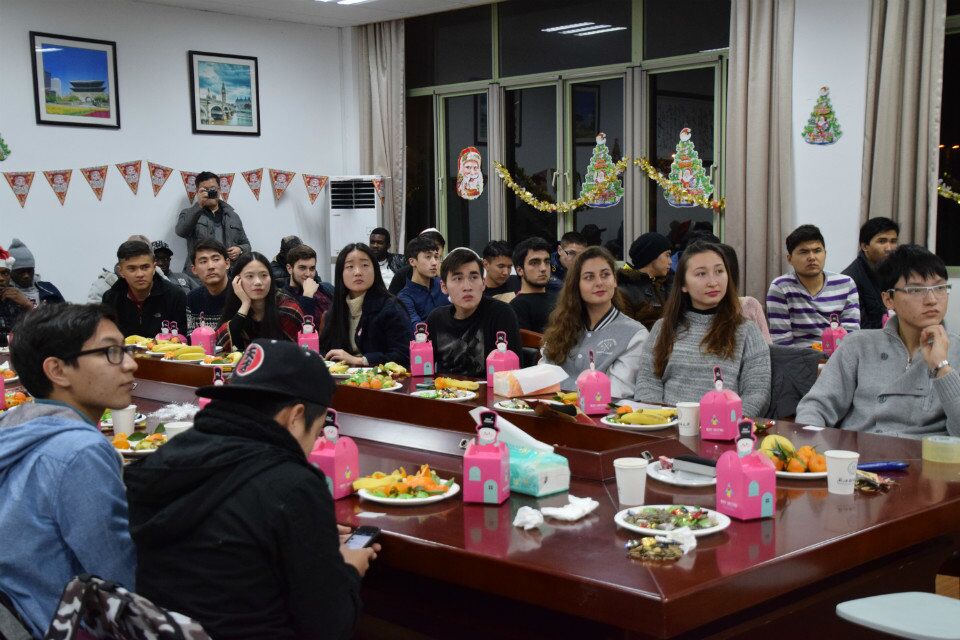 会议室举行,地方虽小但经过精心布置之后,充满了圣诞浪漫温馨的气息,让留学生感受到了圣诞的温暖。