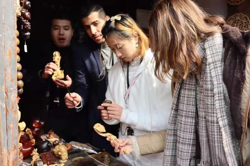 我们的留学生被水乡的传统美食“定胜糕”、布料扎染技术、木雕饰品、传统乐器“埙”以及秀美的水乡图画深深地吸引了,他们感受到中国传统文化的多元化和多样性,被中华文化的独特魅力所折服。参观游览结束之际,留学生仍意犹未尽,纷纷表示下次要约上三五好友,再聚古镇。