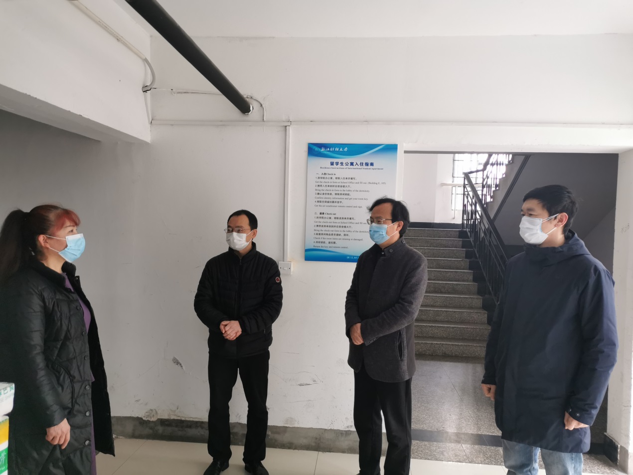 3月2日,校党委副书记黄建新来小欧视频 留学生宿舍巡查指导。黄建新副书记来到紫元宿舍区,与在宿舍值班的辅导员老师进行了详细交谈,对党员老师在疫情防控特殊时期坚持在一线给予了充分肯定,强调要发扬党员先锋模范作用,打赢校园防疫战。黄建新还了解了留学生生活与心理状况,强调要做到严控与疏导双管齐下,确保留守校园留学生安全。