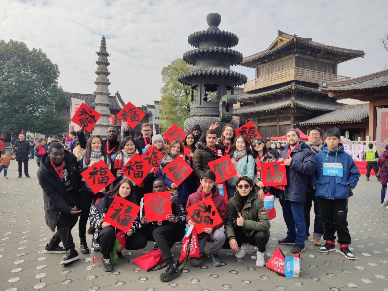 大运河畔,留学生们跟随着近千名市民、游客从“鸿运门”出发,开启了新年祈福走运大会,本次走运大会”一共设置了陆路和水陆联游两条线,并且在途中设置了3处补给站、4个打卡点和10余处演绎点,让留学生们在“走运”过程中能享受一场视听盛宴,领略中国文化的魅力。