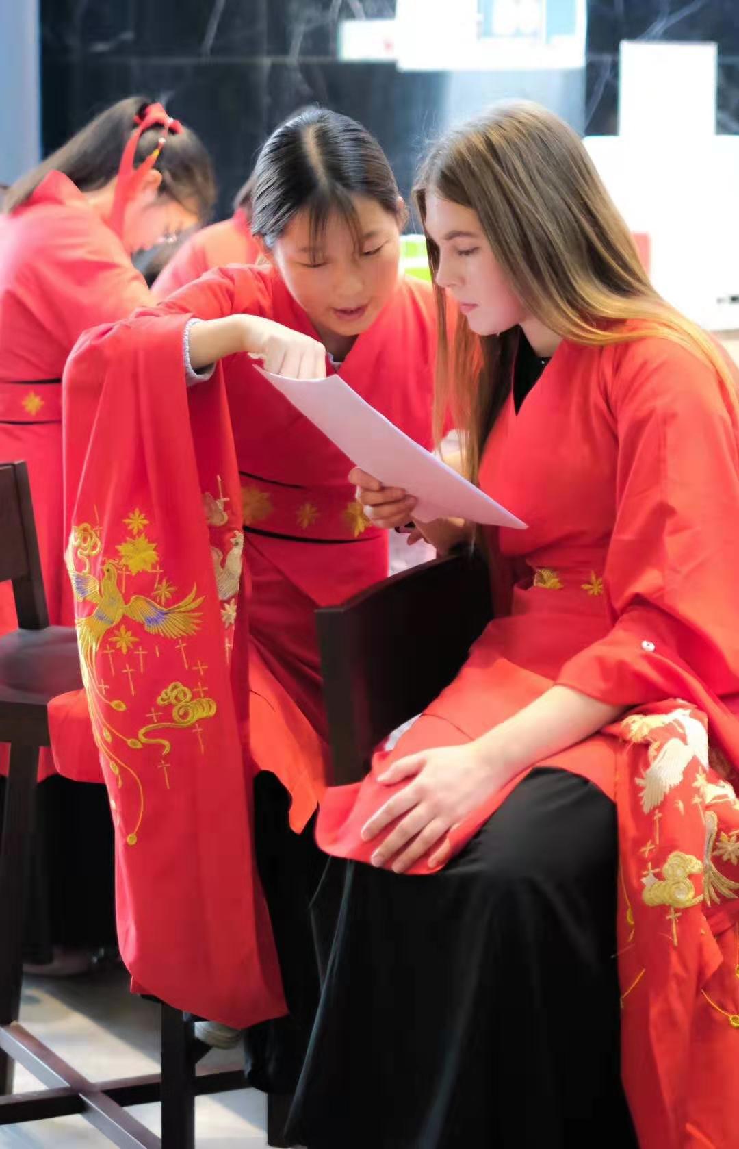 来自不同国家,拥有不同肤色的中外学生此刻相聚一堂,共同感受着中国古老文化的魅力。多元文化于此融汇,似是形成了一道熠熠闪光的文化长河,浩浩荡荡;留学生与中国学生,心与心的交织,似是燃起了一点暖洋洋的星星火光。