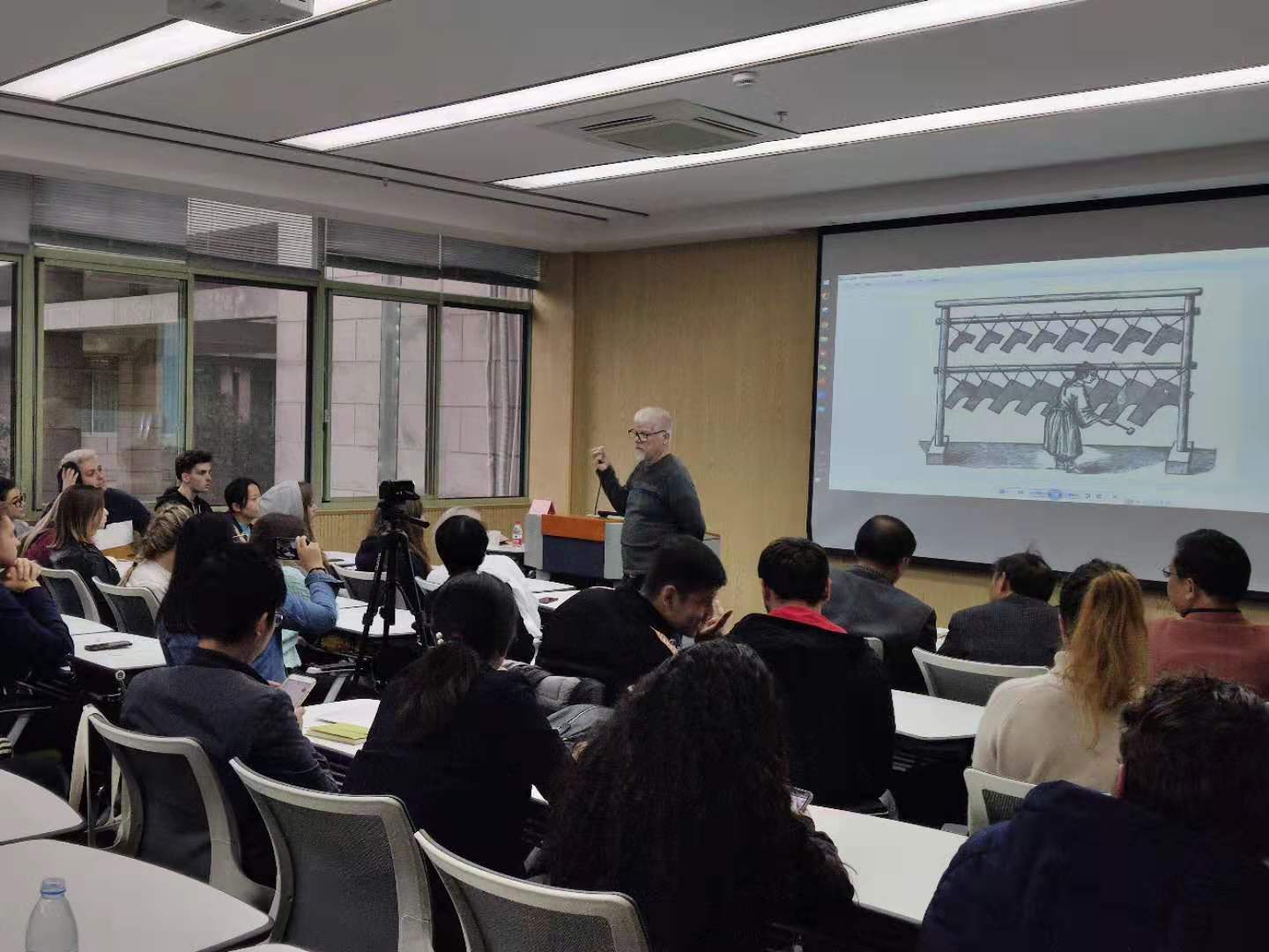 ,讲述了他远赴中国求学、创办汉字字源网站的特殊经历。讲座中,他以一些简单常用的汉字举例,例如“手”、“声”、“黄”等,用一幅幅古书中的字形为学生们讲解一个个方块字背后的源头和演变,并就汉字起源、汉语学习等方面与在场师生进行了深入有趣的互动交流。教室里座无虚席,不论是老师、中国学生,还是初来乍到的留学生们,都被这位头发花白的“汉字叔叔”吸引着,在他的故事里感受着“活到老,学到老的”人生追求,在他的汉字世界里领会着汉字背后的文化魅力。