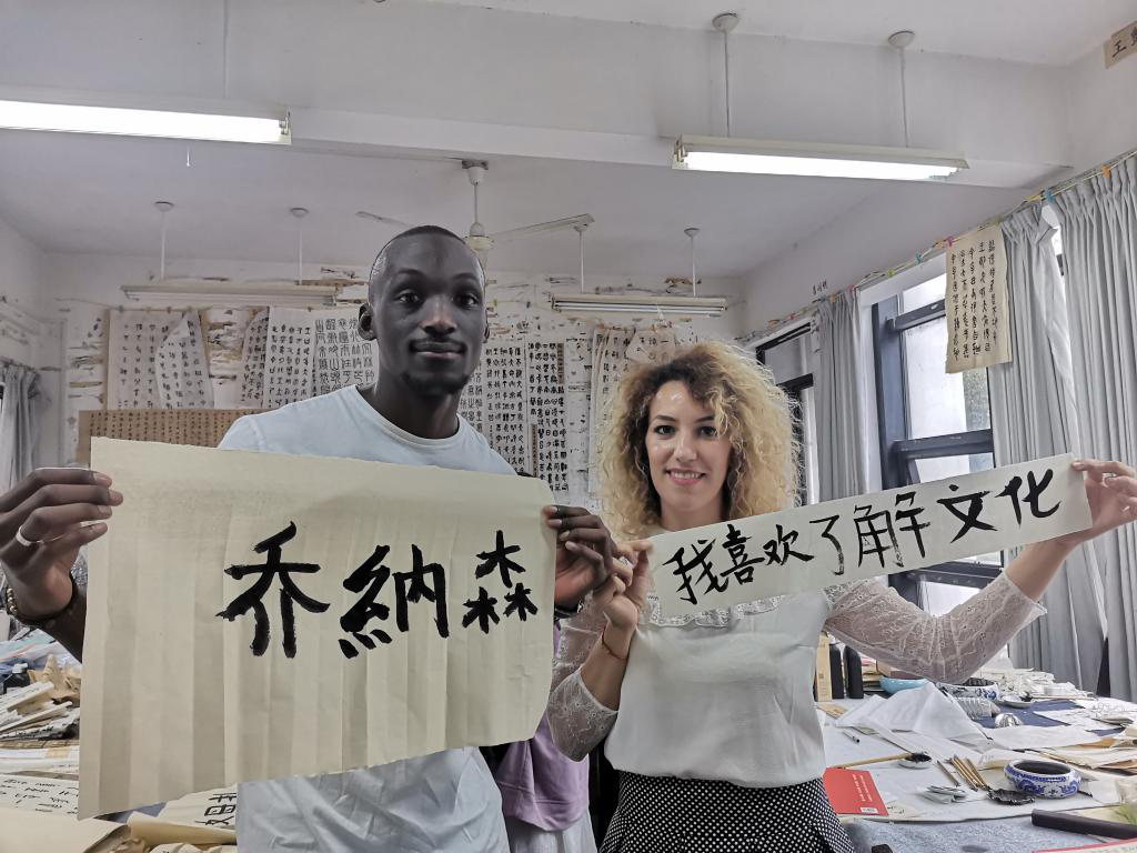 《中国概况》移动课堂来到绍兴,走进绍兴文理学院,学习了解中国书法、与该校师生互动交流。