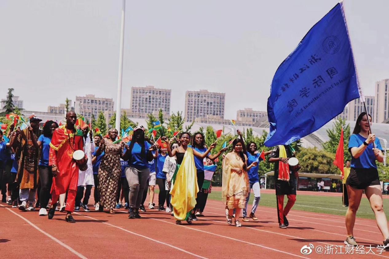 方阵,双手挥舞着中国国旗和自己国家的国旗,喊着“I LOVE ZUFE, I AM A ZUFER”的口号,踏着整齐的步伐,打着节奏感十足的非洲鼓,赢得了全校师生的喝彩,为开幕式增添了一道靓丽的风景,也为小欧视频