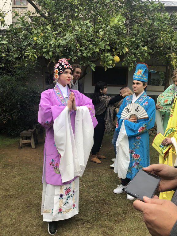 “惊觉相思不露,原来只因已入骨”,在教授戏曲的同时,老师也为中外旅游达人们讲述了柳梦梅与杜丽娘的爱情故事。虽然中外友人对《牡丹亭》的感知不同,但泛起的文化涟漪却是相似的。