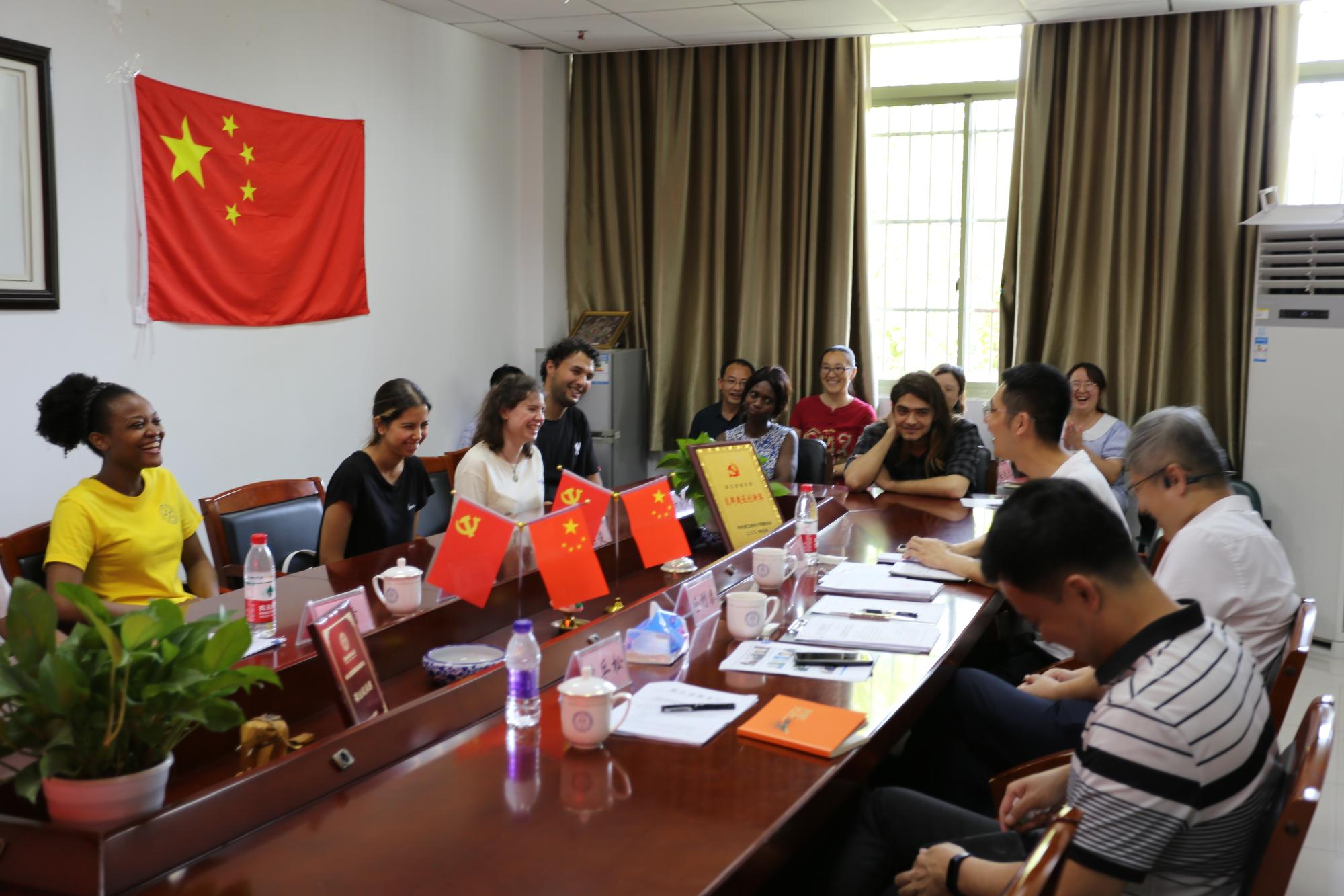 副院长柴志贤、保卫处副处长吴俊、哈萨克斯坦中心主任余慕鸿、院长助理赵倩及部分留学生管理人员一起参加了检查指导交流会。