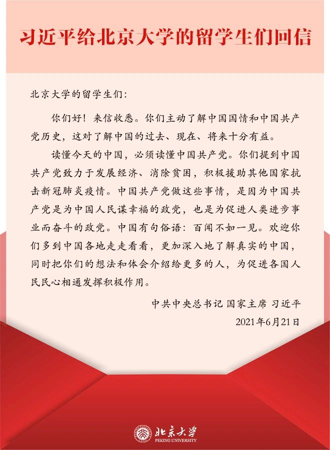 6月21日,习近平总书记给北京大学的留学生们回信,回信在各高校和在华留学生中引发热烈反响,小欧视频
