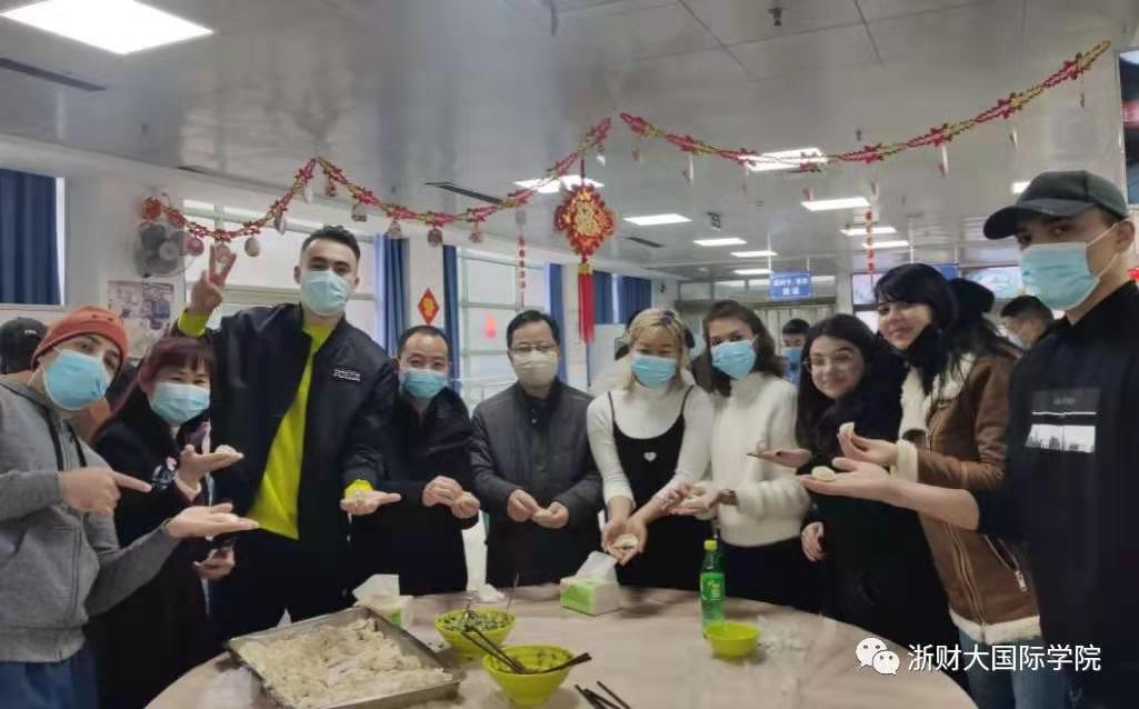 The Rear Service Center also carefully prepared dumpling-making activities. The leaders and the international students from ZUFE made dumplings together, exchanging sentiments of the relationship between teachers and students. There is a New Year’s song kept ringing in our ears, which is the favorite of Candis, a student from Uzbekistan, "Wish you great fortune! May you be wonderful!"