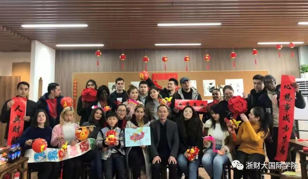 组织在校留学生在文华书院齐诵《笠翁对韵》,共贺中华民族传统的新春佳节。留学生们欢欢喜喜齐聚一堂,体验春节传统文化,留学生们个个展示自己的绝活,写书法,剪窗花,作年画,制灯笼,包饺子,贴春联