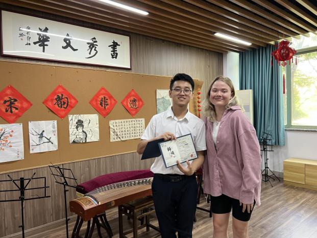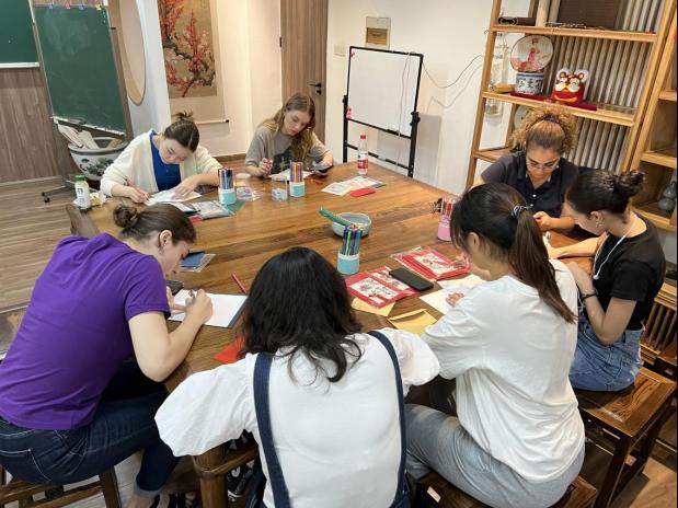 开展2023年“迎新季,感师恩”活动。活动现场设置了中华传统文化体验环节,同学们可以选择琴、棋、书、画、投壶、毽子等活动进行体验,通过文化体验活动让留学生了解中华文化,把中华优秀传统文化融入国际学生教育管理。