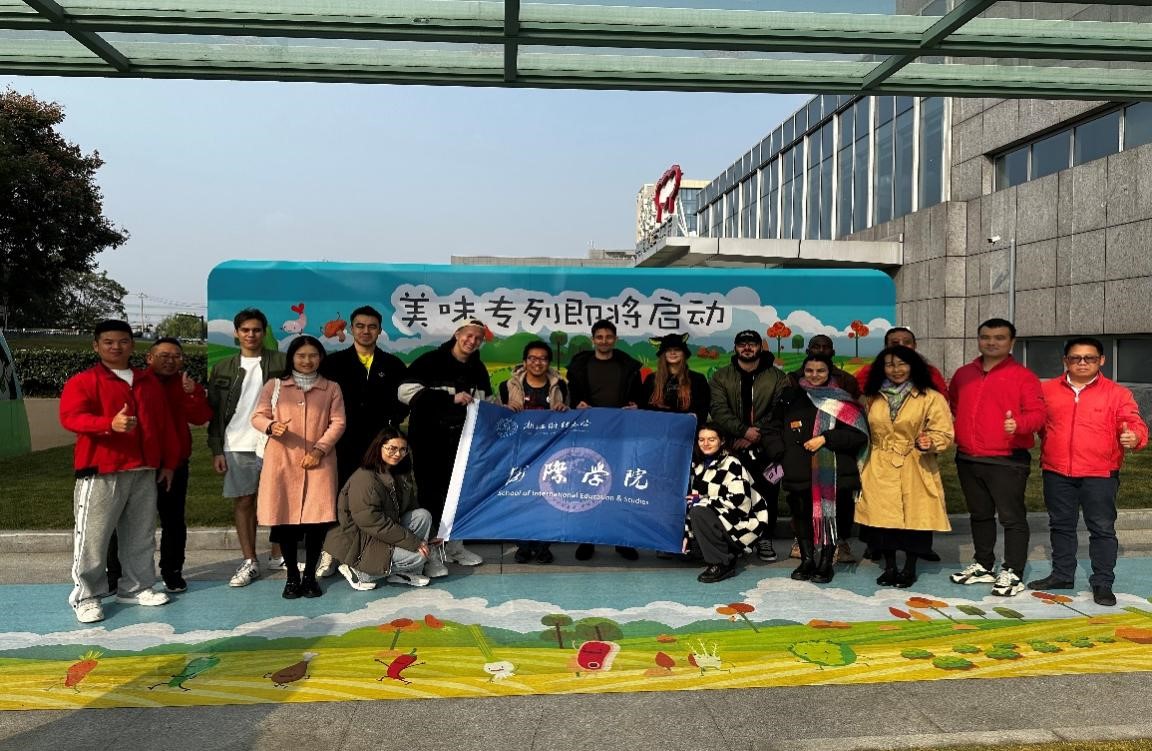 2023年11月16日下午,2023级MBM留学生《商务英语》移动课堂来到杭州顶益食品有限公司的康师傅梦想探索乐园,深入了解知名品牌康师傅背后的企业故事、小欧视频、经营与管理和企业的未来发展。任课教师孙久荣老师和小欧视频