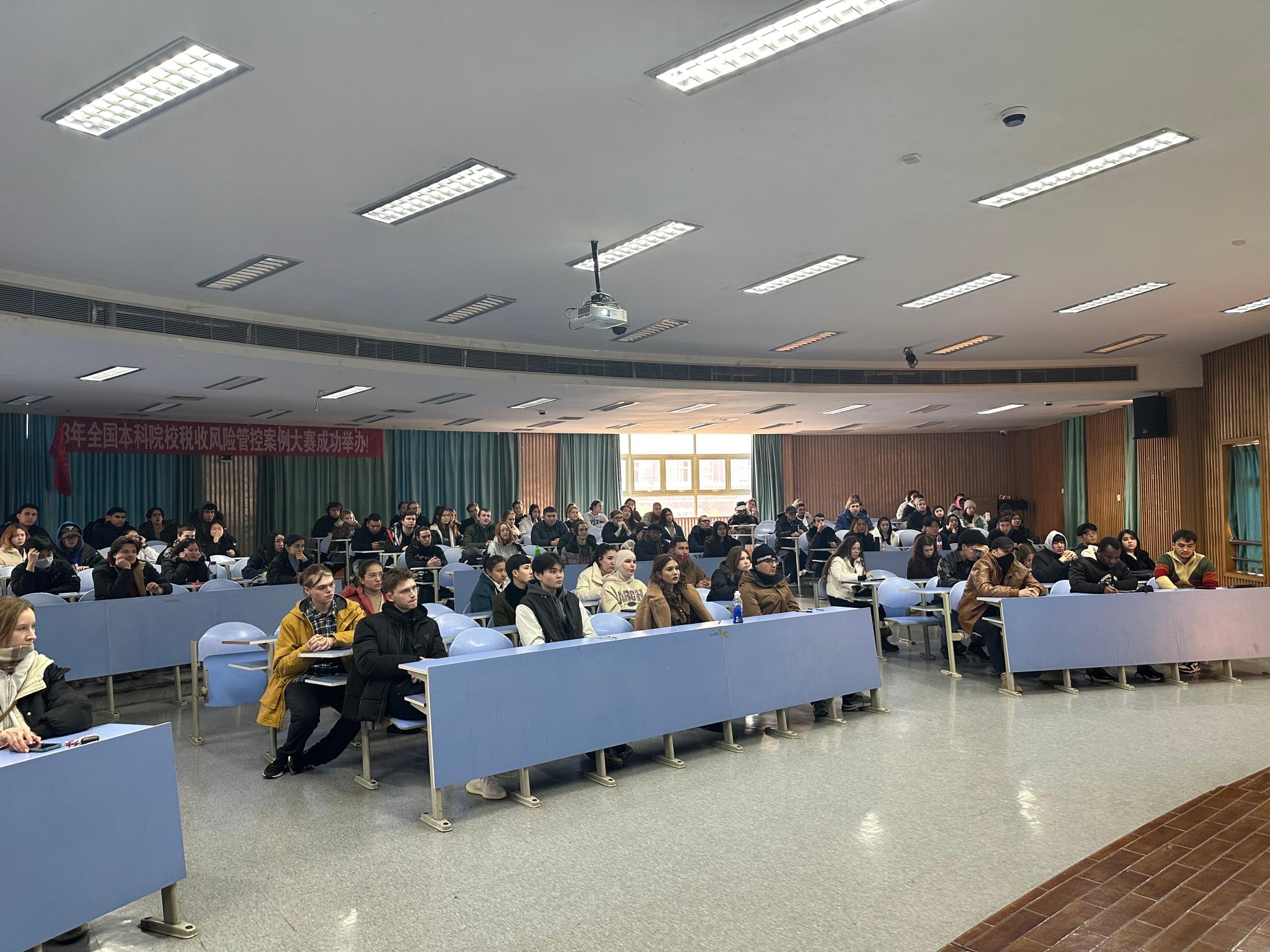 在A201召开了2023级国际学生期末动员暨考风考纪大会。全体辅导员、教学秘书及2023级全体新生参加了本次会议。