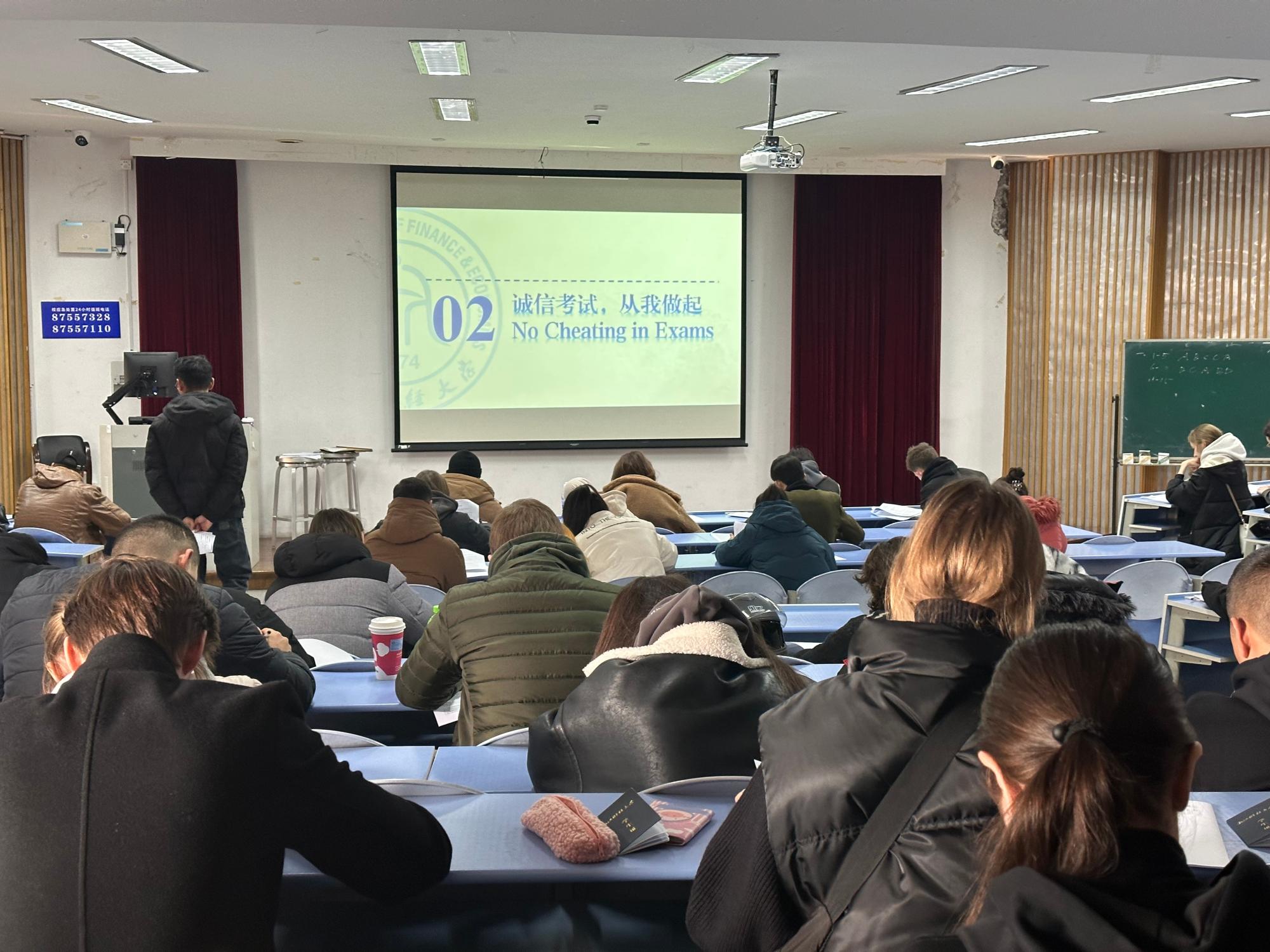 随后教学办秘书陈勃静老师通过列举历年考试违纪案例加深国际学生对考试作弊严重后果的认识,让同学们严格遵守考场纪律,坚决杜绝侥幸心理。