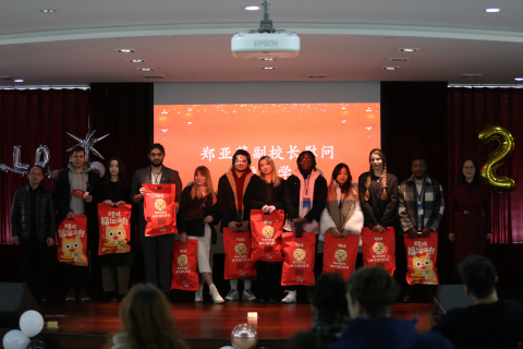 2024年留学生新年联欢会顺利举办。副校长郑亚莉出席联欢会,学院领导和老师以及来自30多个国家地区的100余名留学生共同参加了此次活动。