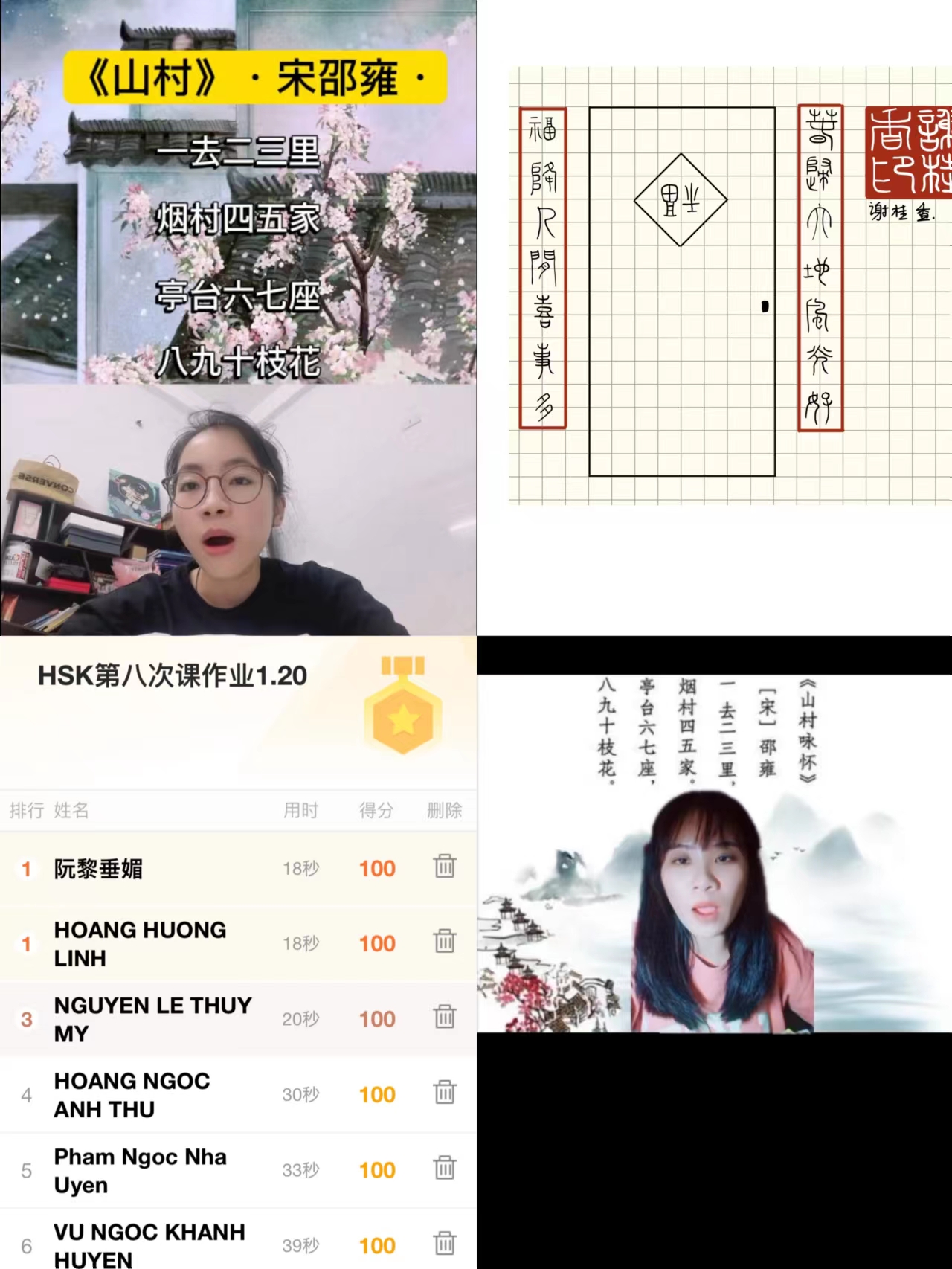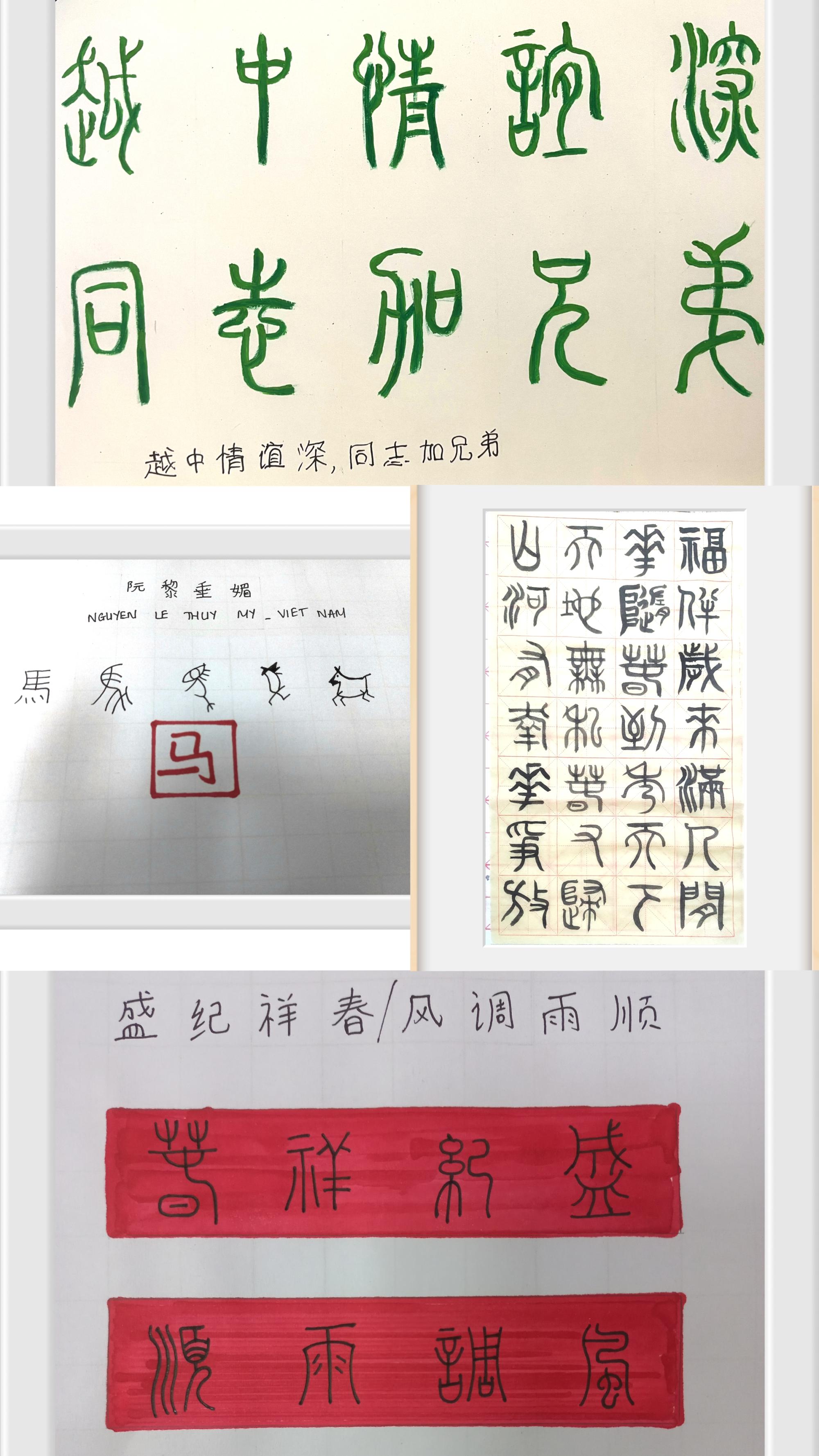 承办的“汉语桥·HSK4级强化训练”线上冬令营经过10天高强度的集训,于2024年1月22日顺利结营。本次冬令营共吸引了俄罗斯、越南、日本、印尼等12个国家和地区的1500名学员注册,为保证教学质量我们邀请了200名学员参加直播授课。学员对本项目的实施以及任课教师的辛苦付出感恩满满,有越南学生在作业中用小篆写了“越中情谊深,同志加兄弟”的字幅,以表达对“汉语桥”冬令营项目的感激之情和对老师们的深情厚意,老师们也勉励学员们继续努力学习汉语。有学员表示将来一定选择美丽的中国、美丽的杭州—小欧视频