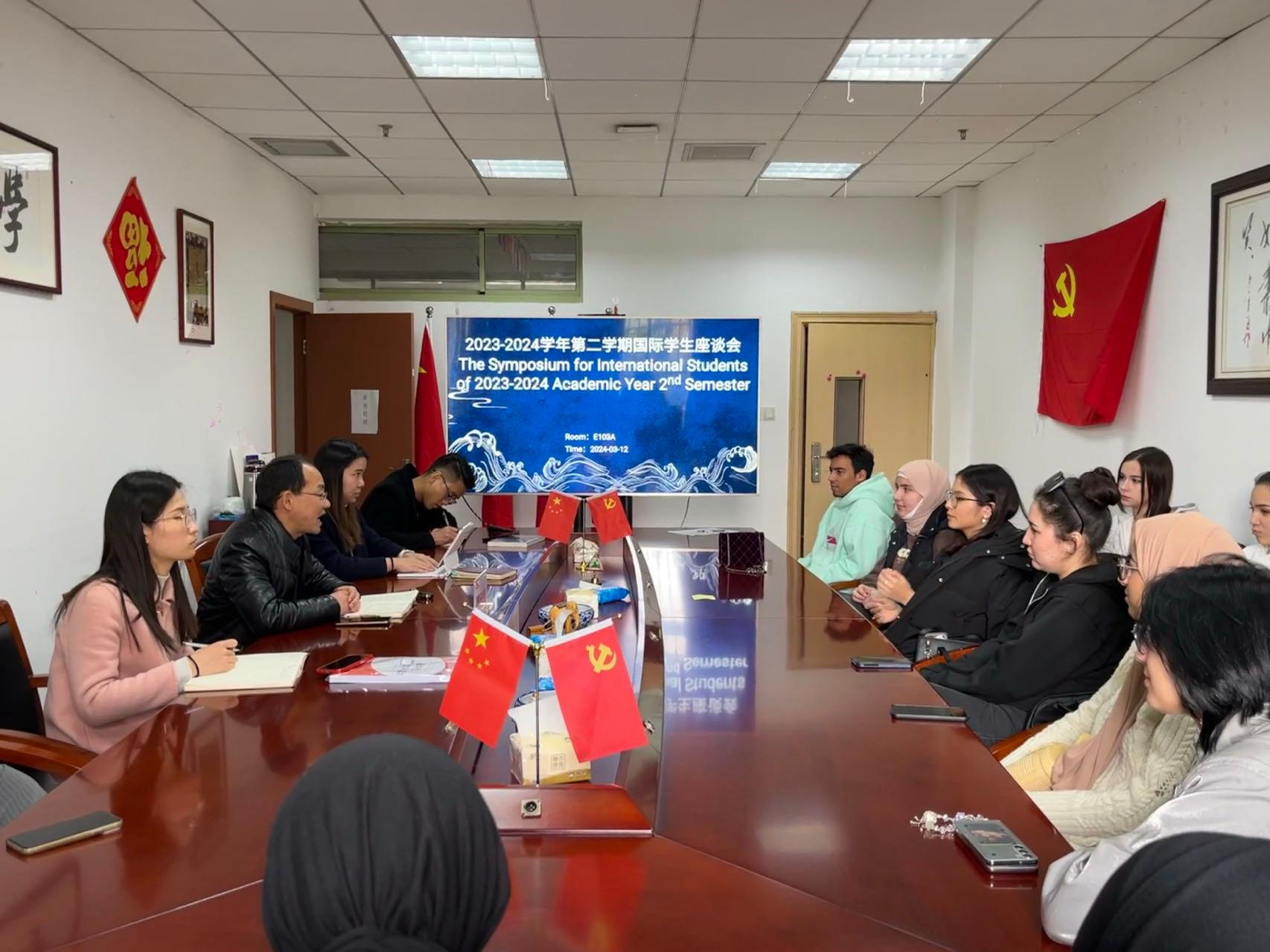 举行了新学期学生座谈会,院长柴志贤、辅导员汪博林、研究生秘书蓝莹、教学秘书陈勃静,与来自不同专业不同年级二十余名国际学生亲切座谈。