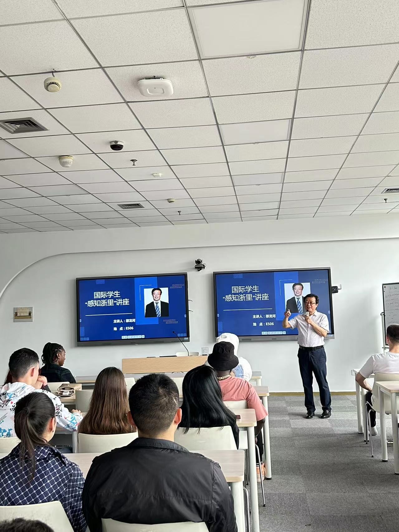 国际学生作题为“感知浙里”的专题讲座。境内相关专业的国际学生认真聆听了此次讲座。