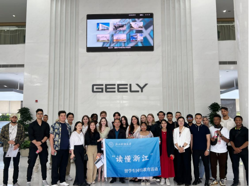 同外国语学院组织百余名中外学生赴浙江吉利控股集团总部参观学习。