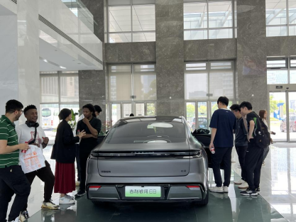 在工作人员的引导下,同学们先参观了吉利集团的汽车展厅,从展厅中的车型展示到上车体验科技感,留学生们深刻感受了中国本土汽车制造品牌之强大,兴致高昂,拍照驻足。