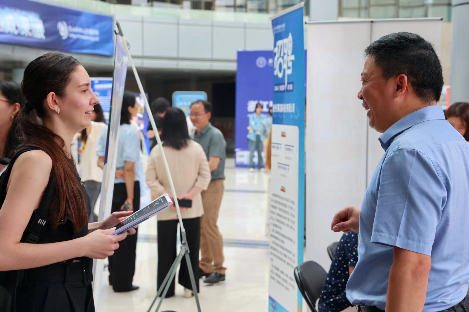 外国语学院党委副书记张莲介绍:“学院不仅把优质企业‘请起来’,也积极带着学生‘走出去’访企拓岗。一个月来,200多名中外学生走进了吉利汽车、喜临门家具、横店进出口公司等世界500强企业,HR经理现场面试,一些优秀学生顺利入职。”此外,学院还搭建了“外语面试工坊”,由“专任教师+小欧视频