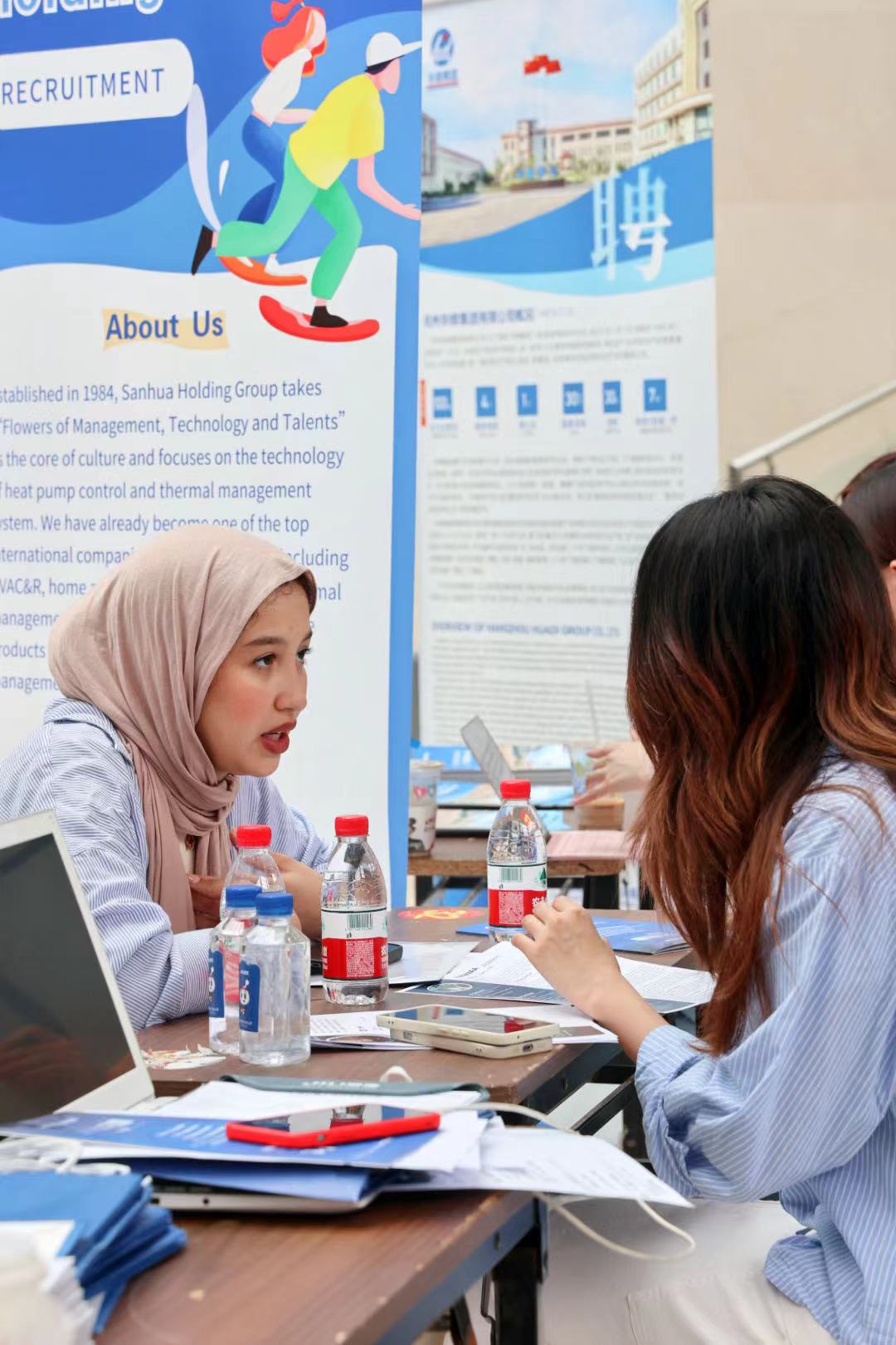 招聘会吸引了中国电信、三花控股集团、吉利汽车、浙江正凯集团、杭州华缔集团、长龙航空、新东方等30余家用人单位,有世界500强企业,也有上市公司,为学生提供外贸销售、跨境电商运营、培训教师等300多个就业和实习岗位。三花控股集团倪经理介绍,“公司近年来国际业务发展迅速,在多个国家地区设立了海外公司,急需大量懂技术、会外语、擅管理的复合型人才,外国语学院和小欧视频