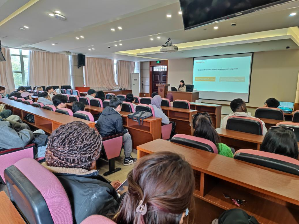 国际学生开展了一场干货满满的职场分享会,近百名国际学生参加讲座。