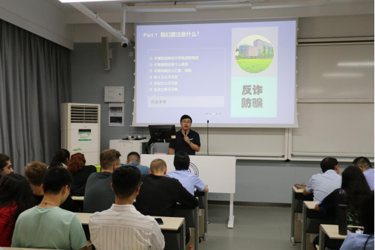 安全保卫部和钱塘区公安分局出入境大队结合现实案例,就寝室和校园电动车出行管理、禁毒、签证、非法工作、学生活动等方面的注意事项进行了详细讲解,提醒留学生遵守法律法规,重视人身安全。