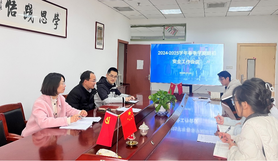 在E103会议室召开2024-2025学年春季学期期初安全工作会议,学院领导、辅导员等参加会议。