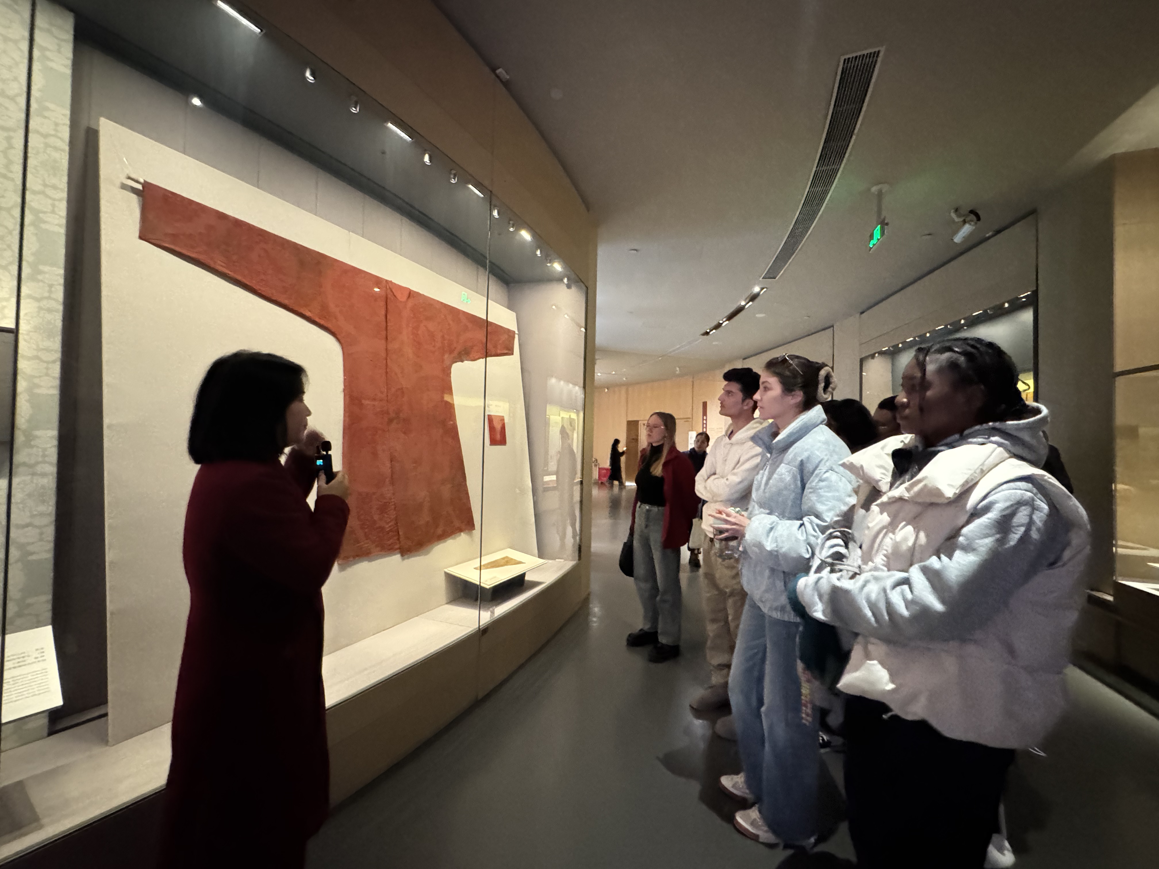 在中国丝绸博物馆,留学生们在专业讲解员的带领下,参观了包括丝路馆、织造馆、锦绣廊、时装馆等多个场馆,深入了解了中国丝绸之路的发展。