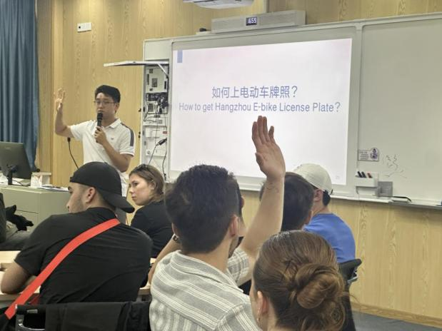 组织召开2025年度国际学生电动自行车安全教育会议,注册有电动自行车的80余名国际学生、国际学生辅导员等参加会议。