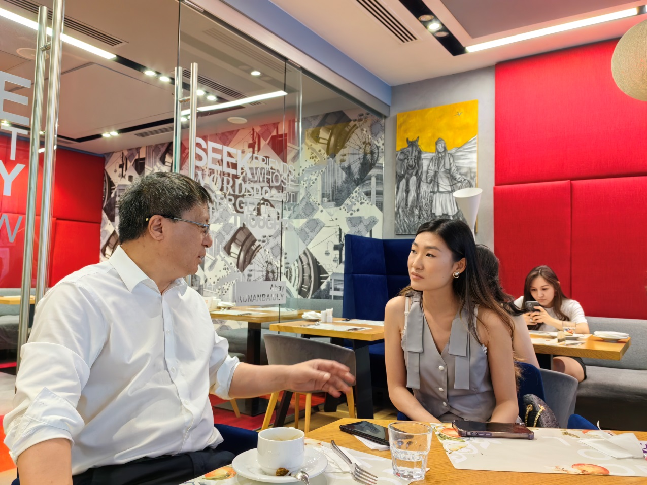 共进午餐,共叙旧情。23届毕业生孙琴一直珍藏着自己参加“梦行浙江”留学生才艺展演的走秀视频,专门拿出来跟老师们分享。杭州的包子,老师的叮咛,钱塘的潮水,学涯湖的白鹅……,一幕一幕,让他们梦回杭州,梦回浙财大。