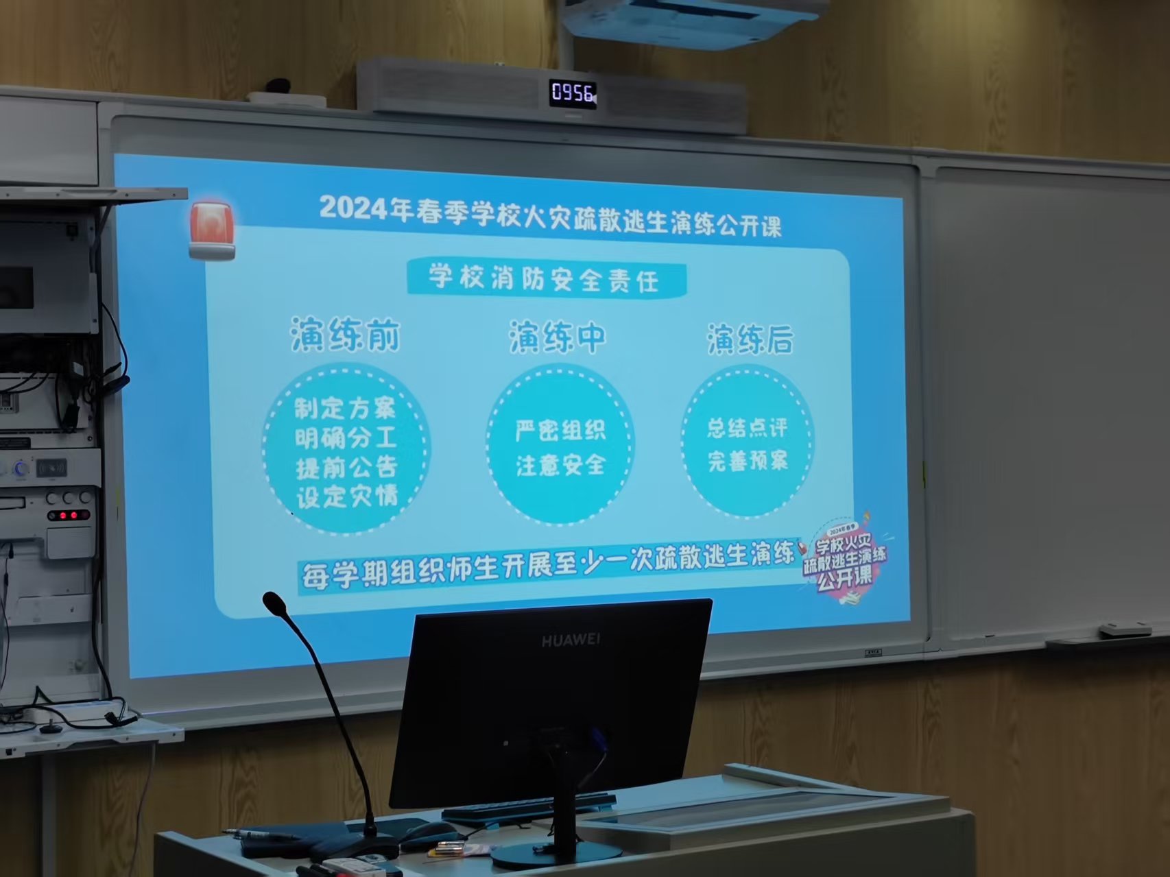 公开课以现场讲授与实景演练结合、主会场与分会场联动的方式,主要对礼堂疏散演练、教学楼疏散演练、学校宿舍逃生演练、固守待援方法、初起火灾处置方法等方面进行科普。课程内容丰富充实,以生动形象、易于接受的视频形式向大家展示了消防安全知识。