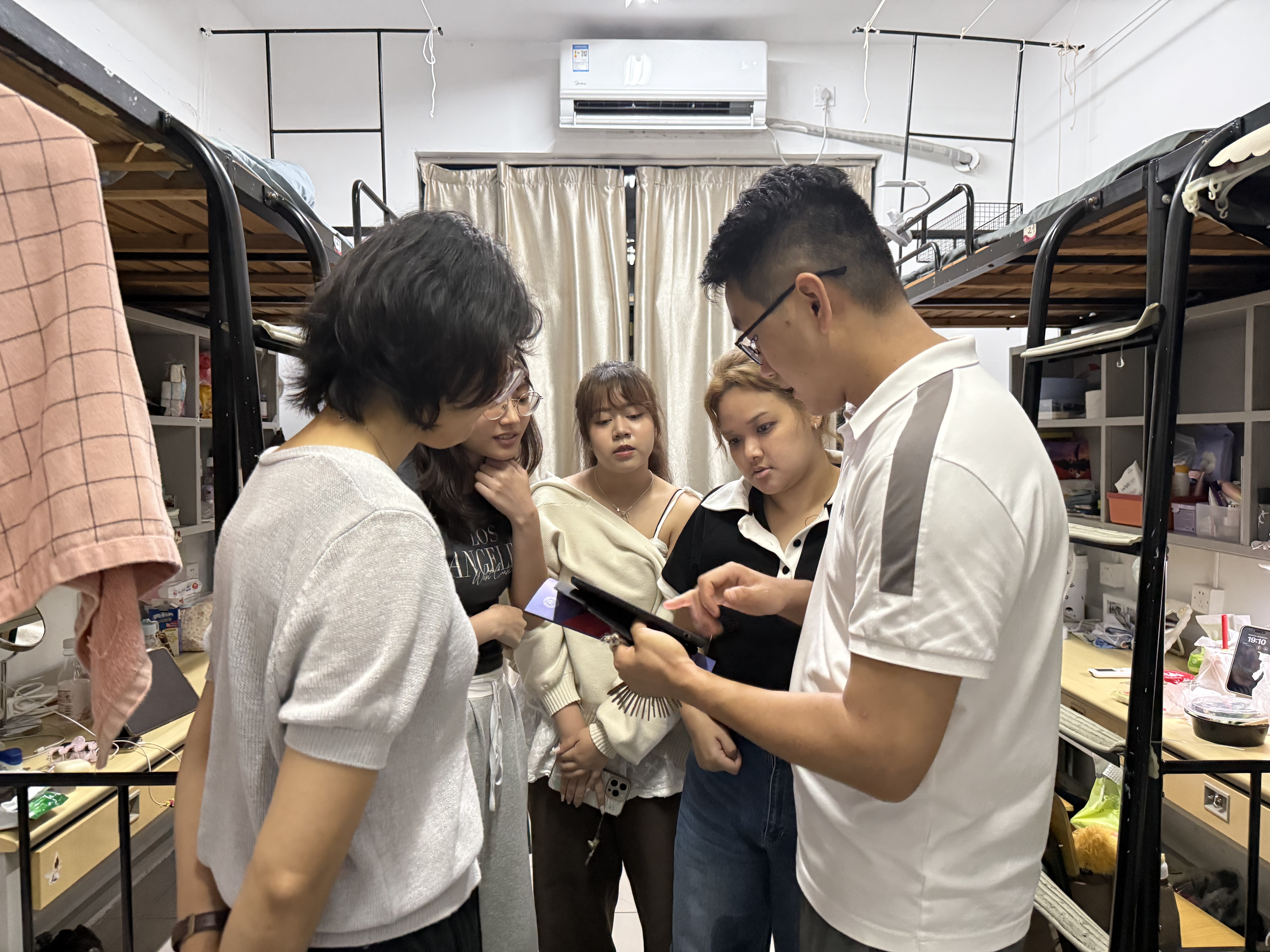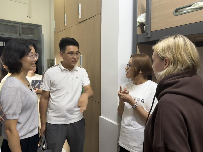 为深入了解国际学生新学期学习生活状态,进一步强化宿舍安全管理,9月24日晚,国教创党总支书记黄金娟、国际学生辅导员及各楼层长共同走进留学生公寓,开展老生宿舍安全卫生检查和新生宿舍走访慰问。