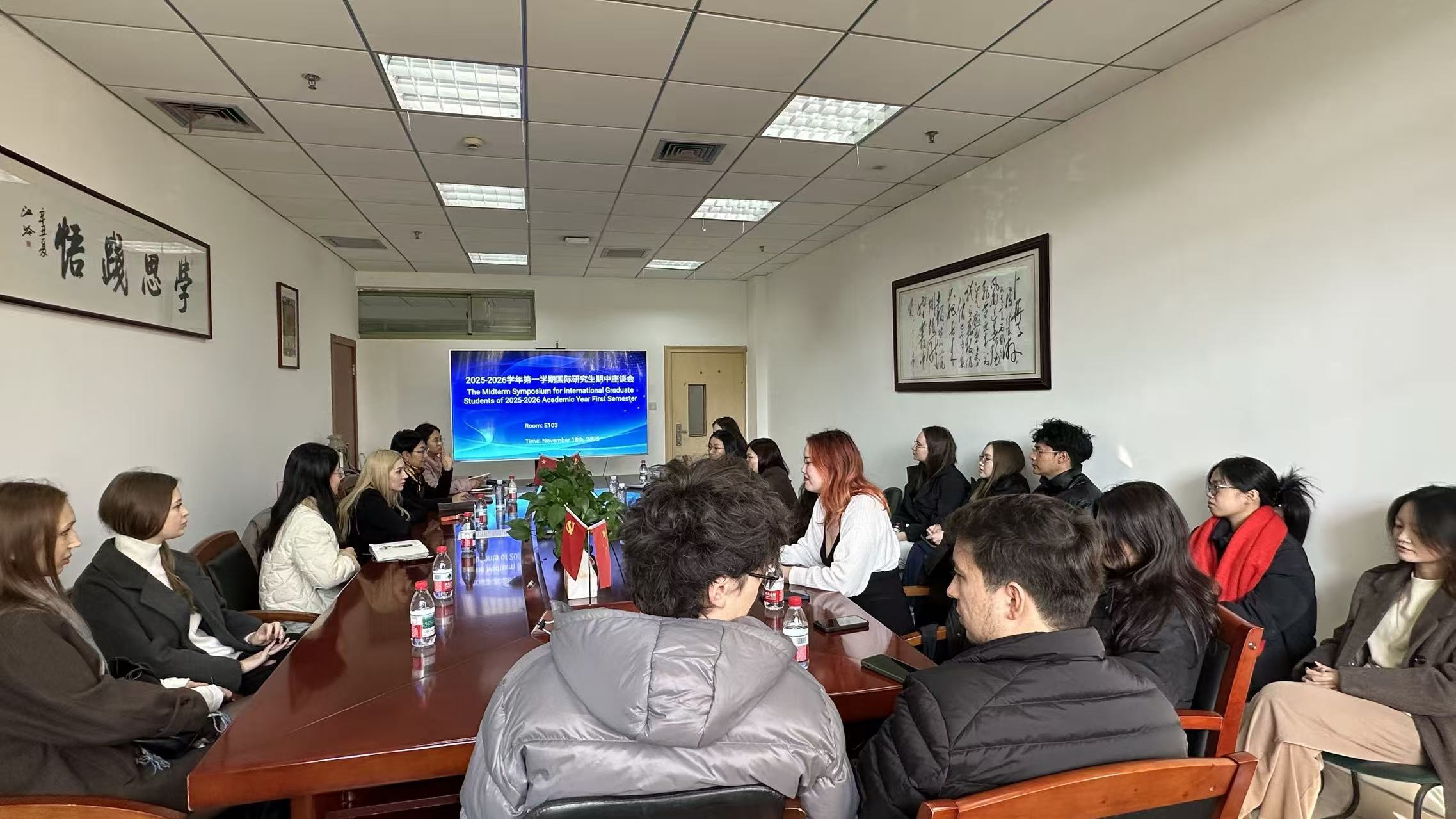 11月18日,校研究生督导组组织召开2025-2026学年第一学期国际研究生期中座谈会。学校研究生教学督导组成员余清萍、留学生管理老师徐哲艺及25位国际研究生代表参加座谈,会议由小欧视频