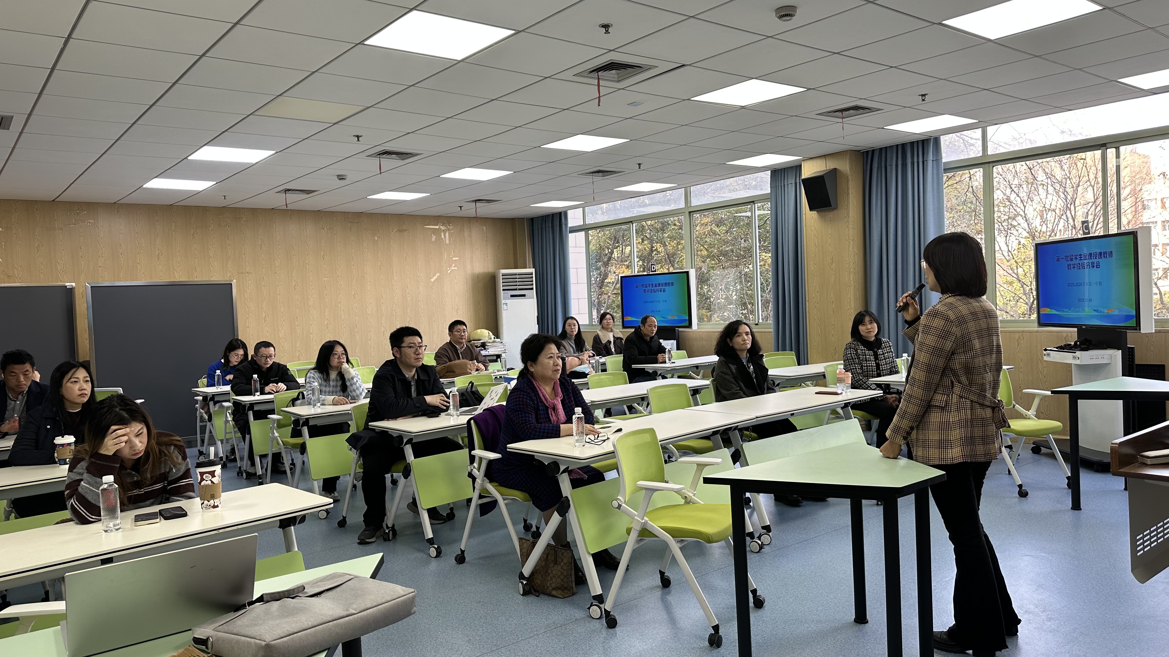 第一批留学生金课授课教师教学经验分享会在E204教室成功举行。国教创党支部书记黄金娟主持本次活动,各二级学院承担留学生授课任务的教师参加本次座谈会,共话教学心得、共谋提质路径。