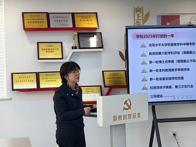 3月7日上午,国教创党总支在唯实楼519会议室召开党风廉政专题党课暨2025年第一次全体教职工大会。会议由党总支书记黄金娟主持,全体教职工参加。会议以“筑牢廉洁防线 护航教育发展”为主题,结合党风廉政建设与年度重点工作部署,进一步凝聚共识、明确方向。