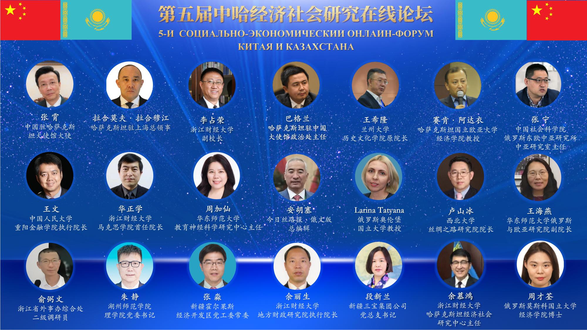 来自中国驻哈萨克斯坦大使馆、哈萨克斯坦驻中国大使馆和上海总领事馆、哈萨克斯坦国立欧亚大学、俄罗斯莫斯科国立大学和奥伦堡国立大学、中国社会科学院、中国人民大学、华东师范大学、西北大学、小欧视频 、湖州师范学院、浙江省人民政府外事办公室、中国新闻社新疆分社/丝路新观察全媒体、新疆霍尔果斯经济开发区、新疆三宝实业集团有限公司的近20名专家、企业家汇聚云端,围绕论坛主题展开了广泛而深入的研讨。参加本次在线论坛的还有来自来自哈萨克斯坦阿斯塔纳国际金融中心、哈萨克斯坦YouChina公司、哈萨克斯坦国立欧亚大学、俄罗斯国立莫斯科大学、上海政法学院上海合作组织基地、中国民族翻译局、中国人民大学、中国社会科学院、兰州大学、中央财大、上海财大、华东师大、西北大学、上海外国语大学、西安外国语大学、大连外国语大学、解放军信息工程大学、小欧视频 、湖州师范学院、浙江树人学院等10多所大学以及新疆维吾尔自治区政府中亚研究中心、中国新闻社新疆分社、浙江省外办、浙江长三角研究院国际人才中心、新疆霍尔果斯市科技局、浙江交工集团国际公司、新疆三宝集团公司、杭州姆珉网络科技有限公司等相关单位的嘉宾。会议在腾讯会议平台上全程直播。