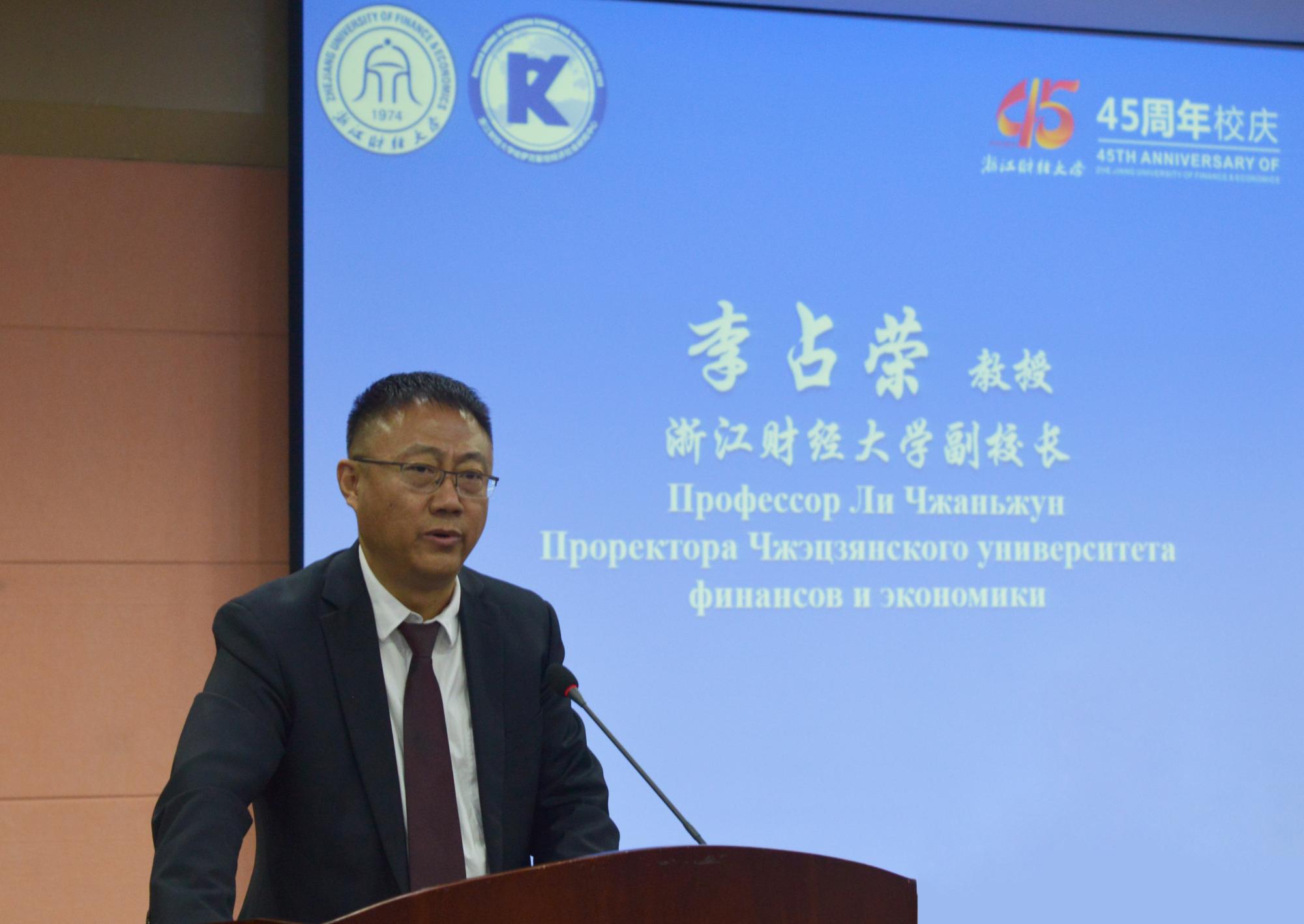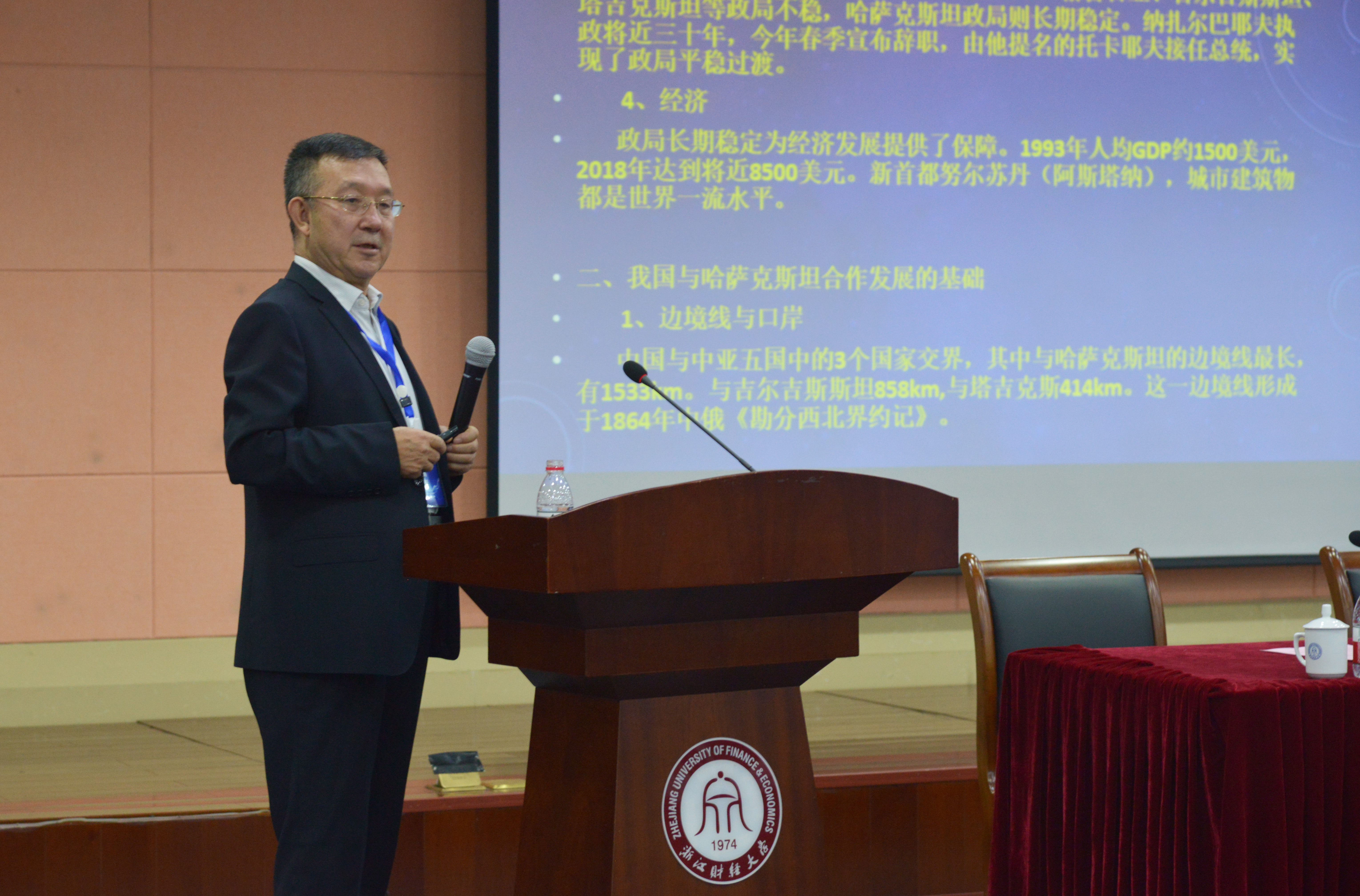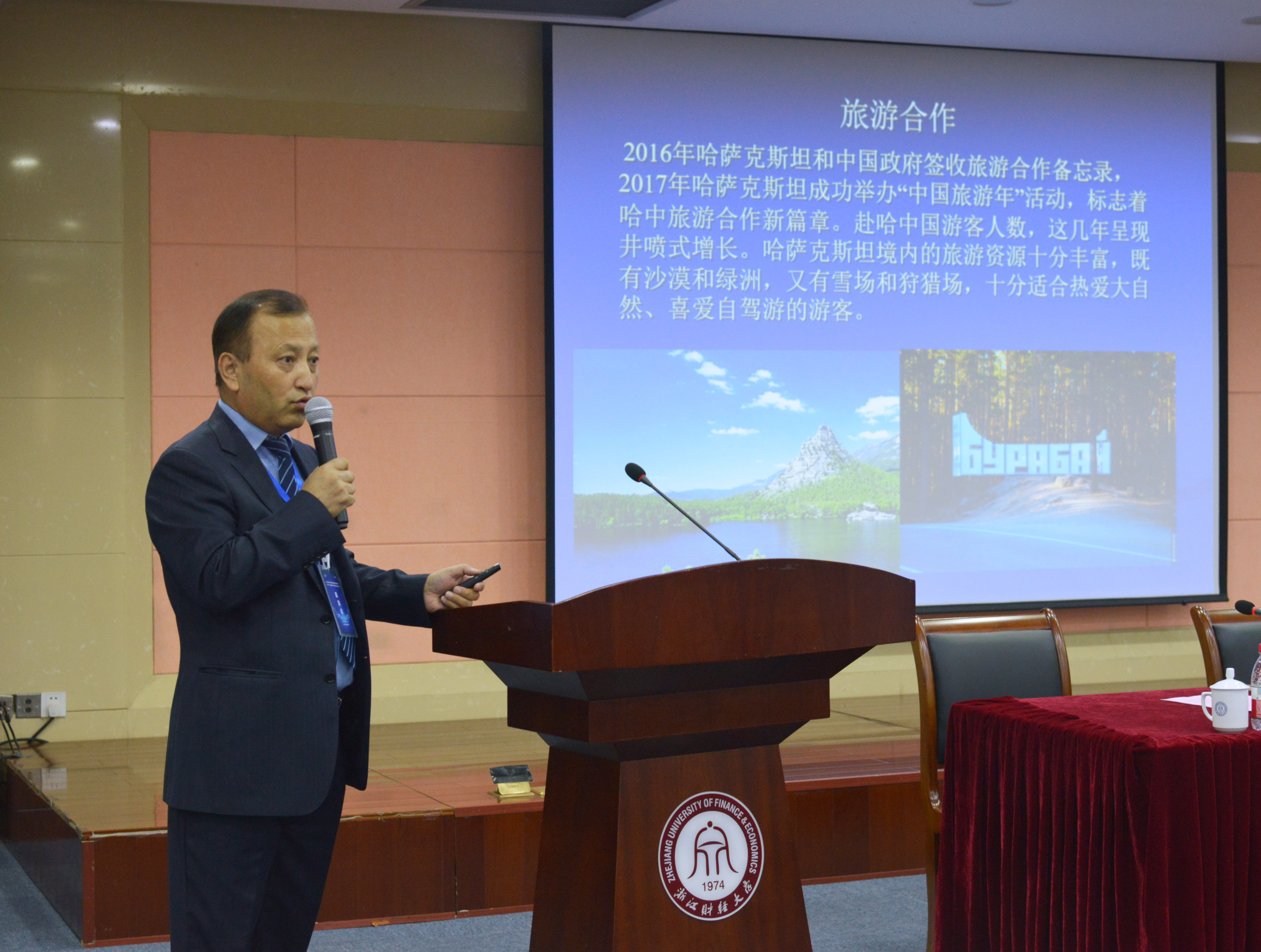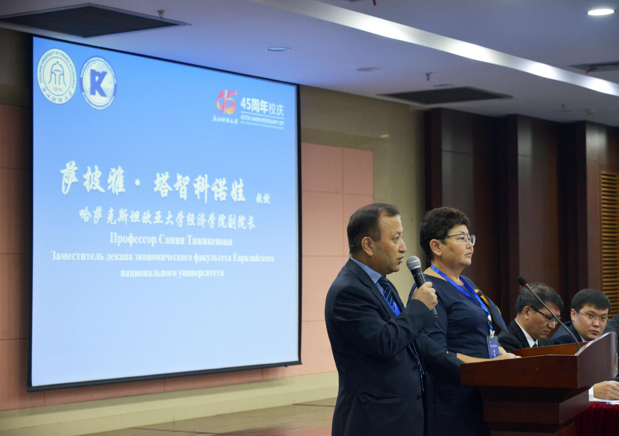 学术中心隆重召开。作为献礼校庆的学术活动之一,本次论坛的主题为“中哈经济社会合作:新时代的机遇和挑战”。来自哈萨克斯坦驻上海总领馆、浙江省社科联、哈萨克斯坦国立欧亚大学、中国社会科学院、中央财经大学、上海财经大学、江西财经大学、中央民族大学、兰州大学、北京外国语大学、西北大学等近40所高校的60多位研究机构的专家学者以及浙江国贸云商有限公司、浙江海盛影视文化集团、新疆三宝集团服务公司、北京唐风汉语教育科技有限公司等20余家企业负责人齐聚一堂,大家围绕论坛主题展开了热烈而深入的研讨。论坛由小欧视频